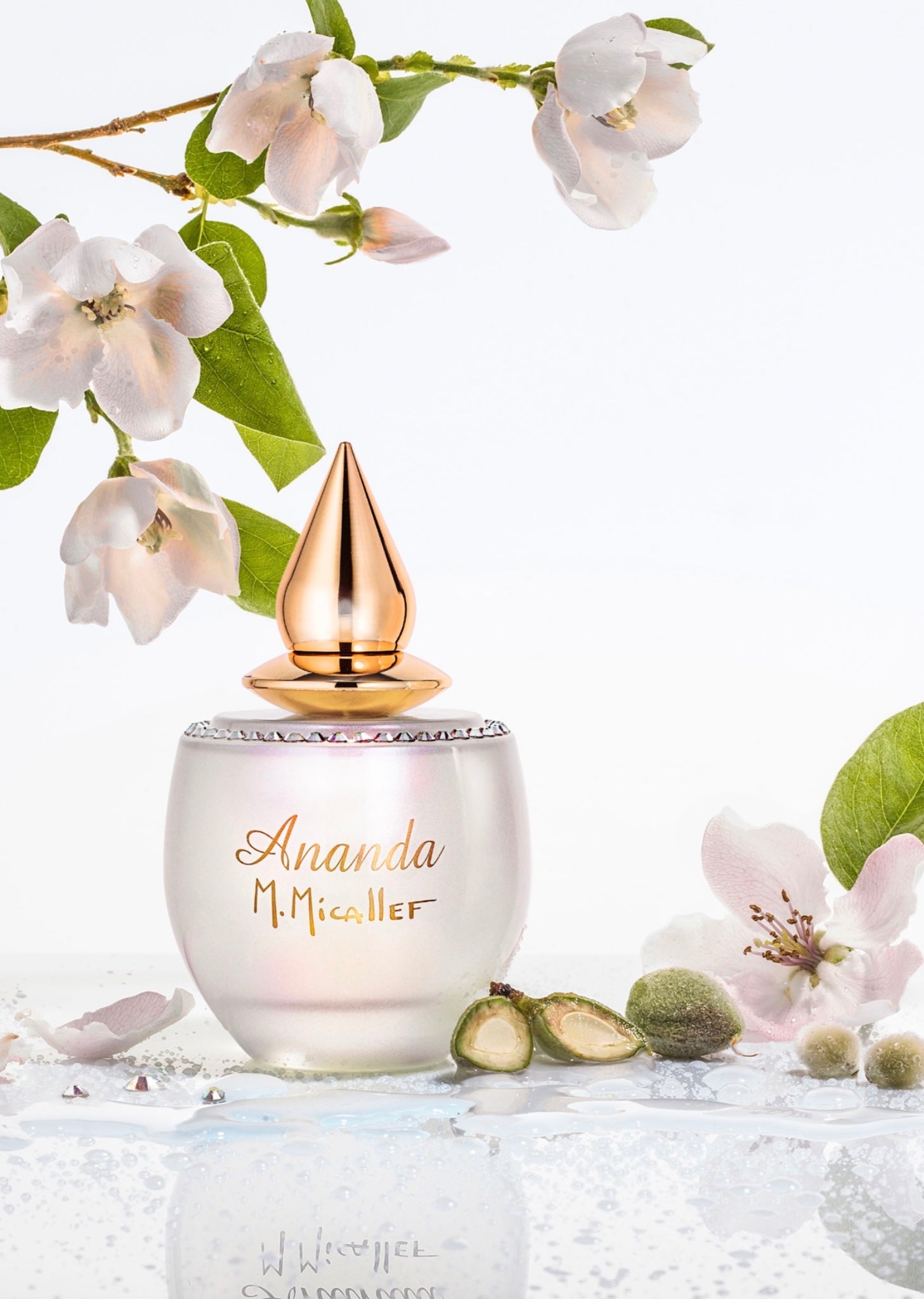 An ode to serenity and eternal femininity, Ananda opens with delicate fruity notes that gently give way to a radiant bouquet of white flowers. At its heart, the powdery elegance of violet and mimosa unveils a soft, floral harmony that soothes the senses.